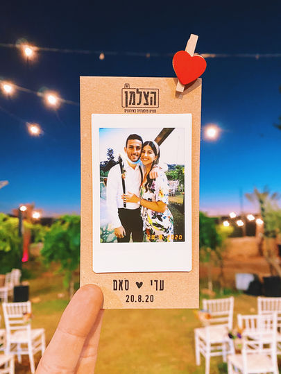 התצלום מוצמד לגלויית קראפט ממותגת עם מגנט בגב הגלויה ונתלה על סטנדים בסגנון וינטג’ יחד עם מעטפה, לטובת איסוף האורחים. איזי ;-)